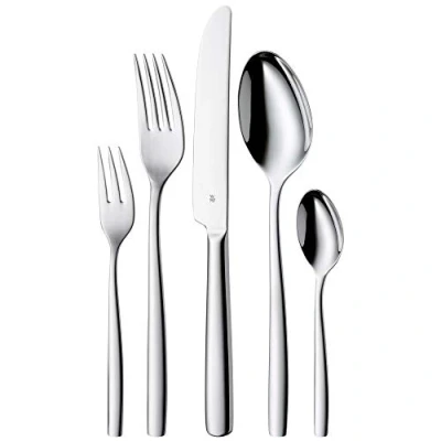 set de couverts de 30 piècesen acier inoxydable Cromargan 18/10 policouteaux forgés en acier à lameconvient pour 6 personnespasse au lave-vaisselle Le set de 30 couverts PALMA de WMF est un superbe accessoire en acier inoxydable 18/10 pour tous les ménages, qui se distingue par sa grande fonctionnalité et sa longévité. Le matériau dans lequel l'outil est fabriqué garantit une manipulation et un entretien faciles. Il est idéal pour la préparation d'une grande variété de plats et facilite les processus de cuisson simples ou complexes. Matériau : Acier inoxydable 18/10 Propriété Surface : Poli Couleur : Acier inoxydable Propriétés : Neutre au goût Propriétés : Convient au lave-vaisselle Nombre : 30 Nombre de personnes : 6 30 pcs. Set de couverts : 6 fourchettes, 6 couteaux, 6 cuillères, 6 fourchettes à gâteau, 6 cuillères à café Colis standard Marque : WMF Numéro d'article 003687020007000 Un style adapté : le set de couverts Palma Quesoit dans une ambiance moderne ou avec de la porcelaine traditionnelle : le set de couverts Palma pour 6 personnes de WMF s'adapte toujours avec style. D'un design neutre, il rayonne d'une élégance sobre avec ses lignes légèrement courbées et ses proportions agréables. Les couverts polis miroir avec leurs couteaux de à lame crantée, forgés d'une seule pièce en acier inoxydable, se combinent de multiples façons. Il se marie parfaitement avec des matériaux naturels, des couleurs chaudes et de nombreuses formes. Ces couverts s'intègrent ainsi facilement et harmonieusement dans la vie quotidienne et l'ambiance individuelle. - set pour 6 personnes, CARACTERISTIQUES DU PRODUIT : Set composé de : 6 x cuillère à soupe, 6 x fourchette, 6 x couteau, 6 x cuillère à café, 6 x fourchette à gâteau, - en acier inoxydable 18/10 Cromargan® poli - alliage métallique breveté par WMF, résistant aux dommages et aux rayures, aux acides des légumes et des fruits, n'absorbant pas les odeurs, - lavable au lave-vaisselle. Dimensions : 21 cm (cuillère à soupe), 21 cm (fourchette), 23 cm (couteau), 13,5 cm (cuillère à café), 16 cm (fourchette à gâteau) Couleur : argent Matériau : acier inoxydable Cromargan® Contenu : Set de couverts 6 personnes (30 pièces) : 6 fourchettes, couteaux de table, cuillères, fourchettes à gâteau, cuillères à thé/café - Numéro d'article : 1272916040Matériau : acier inoxydable Cromargan 18/10 poli (brillant). Les couverts en Cromargan sont résistants aux acides alimentaires, neutres au goût, inoxydables et lavables au lave-vaisselleLe couteau monobloc tient bien dans la main et a un poids équilibré. Les surfaces ont été découpées avec précision. Tous les bords sont soigneusement arrondis WMF Palma Cromargan 18/10 Basic Set Les couverts plaisent par leur sobriété et leurs proportions harmonieuses. Le design neutre s'intègre aussi bien dans un environnement moderne que dans des formes traditionnelles. Grâce à son élégance discrète, Palma se combine de multiples façons. Les couverts WMF ont un design sobre et des proportions harmonieuses. Ils s'intègrent aussi bien dans des environnements modernes que traditionnels et s'adaptent discrètement et universellement aux univers de table les plus divers. Autour d'une table joliment dressée, la paix intérieure s'installe, on se réjouit de manger et de savourer le plaisir qui s'annonce. Avec des amis ou en famille, cela devient un événement convivial. Les couverts et les accessoires de table WMF créent l'ambiance adéquate. Les couverts WMF Palma sont en Cromargan, la marque déposée de WMF pour l'acier inoxydable 18/10. Ils sont donc inoxydables et lavables au lave-vaisselle, indéformables et inusables, neutres au goût et résistants aux acides alimentaires. Cromargan, est une marque déposée de WMF depuis 1927 pour l'acier inoxydable 18/10. L'alliage est composé de 18% de chrome, 10% de nickel et 72% d'acier. Le chrome rend le matériau inoxydable, le nickel le rend résistant aux acides et lui donne de l'éclat. Cette composition donne un matériau aux propriétés d'utilisation élevées. Données techniques Fabricant WMF Code du modèle du fabricant WMF Palma Cromargan 18/10 Basic Set Matériau Acier inoxydable Nombre de set 30 pièces pour 6 personnes Autres spécifications Lavable au lave-vaisselle selon RAL Classe énergétique A Couleur du produit silver Dimensions du produit 29,3 x 35,2 x 5,8 cm Poids du produit 1,6 kg WMF Palma Set de couverts en acier inoxydable 6 personnes, Set de couverts de table 30 pièces WMF Palma Cromargan 18/10 Basic Set 30 pcs. (12.7291.6040) WMF Palma - Couverts - 30 items - acier inoxydable