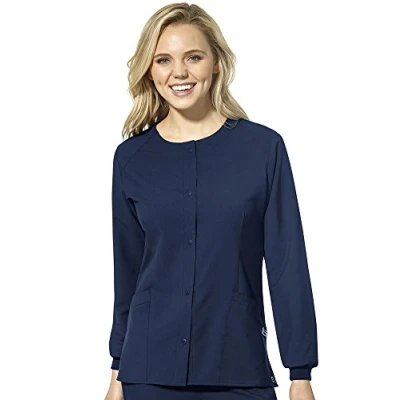 Coutures pour un ajustement profilé. Épaule droite. Poignets en maille côtelée de 9 à 9 cm. Poches avant à chargement sur le dessus avec bande utilitaire cachée, poche gauche. Anneau en silicone de la marque Wonderwink, poche gauche, fermeture à bouton pression en plastique, 100 % polyester stretch mécanique, coutures latérales de 10,2 cm sur l'ourlet.