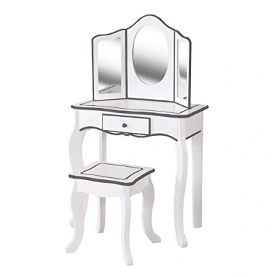 WOOMAX 85389 Teamson Coiffeuse en Bois avec Tabouret et Miroir pour Fille, Centre de beauté tiroir, Jouets éducatifs Enfants 3 Ans, Gris, M