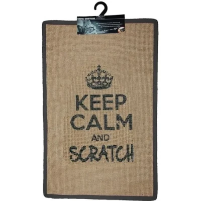 UN TAPIS GRIFFOIR APPESANT : il va calmer le besoin naturel des félins de faire leurs griffes. C’est la solution pour éviter que les chats ne s’attaquent aux murs et aux meubles. UN TAPIS GRIFFOIR RESISTANT : il est confectionné à partir d’un sisal résistant. Votre chat va prendre plaisir à le griffer pendant de longues heures. UN TAPIS GRIFFOIR PRATIQUE : antidérapant et souple, il se glisse n’importe où et il se range très facilement dans un placard ou une commode. UN TAPIS GRIFFOIR ORIGINAL : avec son inscription « Keep Calm and Scratch », il ne laisse personne indifférent. TAILLE UNIQUE : parfait pour calmer les chats, ses dimensions sont de 60 x 38 x 1 cm