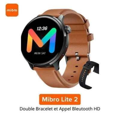 Montre intelligente Mibro Lite 2 Design classique et élégant Un design élégant et classique qui s'harmonise avec toutes vos créations. Le grand écran AMOLED de 1,3 pouce, facile à lire, ne vous laissera pas tomber. La smartwatch Mibro Lite 2 peut devenir votre "seconde main". Elle a toutdont vous avez besoin ! Principales caractéristiques Écran 1,3" AMOLED HD 391 ppiCadran en métalDesign moderne et simpleRésistance à l'eau 2ATM60 modes sportifsContrôle facile du menuPrise d'appel pratiqueSuivi de la santéSuivi de la santé des femmesChoix de cadrans élégants 60 modes sportifs les 60 modes d'entraînement comprennent des exercices en extérieur et en intérieur. Une fois votre séance d'entraînement terminée, vous pouvez générer un rapport d'exercice pour témoigner de chacune de vos réussites. Surveillance de la santé La surveillance de la fréquence cardiaque sur 24 heures vous aide à vous faire une meilleure idée de votre condition physique et vous avertit en cas de fréquence cardiaque élevée. En outre, la montre mesure les niveaux de saturation en oxygène du sang. La montre intelligente vous permet de surveiller votre fréquence cardiaque, votre sommeil, votre stress et votre saturation en oxygène dans le sang. Remarque :produit n'est pas un dispositif médical. RÉSISTANCE À L'EAU 2 ATM La montre est résistante à l'eau, vous pouvez donc facilement nager avec elle sans craindre d'être inondé. La résistance à l'eau jusqu'à 2 ATM est basée sur les tests du laboratoire Mibro. L'effet réel peut varier en fonction du produit spécifique, des habitudes de l'utilisateur et de l'environnement. Ne portez pas la montre pendant la plongée, le ski nautique, les sources d'eau chaude ou d'autres activités à grande vitesse ou en immersion profonde. Réponse pratique aux appels Traiter les appels entrants au poignet est facile et pratique. Des réponses rapides en un clic ! Vous êtes occupé ? En cas d'appel entrant, levez votre poignet et cliquez pour répondre par SMS. Contenu du kit Montre (avec bracelet en cuir) x1Bracelet en silicone x1Manuel d'utilisation x1Manuel du propriétaire x1Câble de recharge x1Emballage x1 Systèmes d'exploitation pris en charge : AndroidiOSDiagonale de l'écran : 1,3"Résolution : 360 x 360Type de matrice : AMOLEDMémoire interne : 96 MBProcesseur : SS6600A8 (Dual-Core)Appareil photo : NonFonctionnalités : Surveillance de la fréquence cardiaqueSurveillance de la pression artérielleSurveillance de l'oxygène dans le sangCompteur de pasNotifications du smartphoneCrotomètreSurveillance du sommeilSurveillance de l'activité physiqueAlarmeModes sportifs variésBatterie : 350 mAhDurée de vie de la batterie : 12 joursAutonomieen veille (max) : 60 joursCommunication sans fil : BluetoothEnveloppe : 44 mmCouleur : noirDimensions : 44,7 mm x 22 mm x 11,5 mmPoids : 54gAutres caractéristiques : Résistance à l'eau 2 ATTemps de charge : 3hMatériau du bracelet : SiliconeMatériau de l'enveloppe : MétalLongueur du bracelet : 248mm 1. Fonctionnement par bouton rotatif,qui rend le contrôle plus lisse2. Sélection riche et exquise de fonds de cadran, Personnalisez le cadran3. 60 modes sportifs professionnels qui rendent le sport plus sûr et plus efficace4. Veillez à la santé de votre cur avec letracker de fréquence cardiaque sur 24 heures5. Suivi quotidien de l'activité, assistant de vie pratique Écran AMOLED HD de 1,3 pouce.