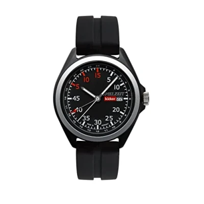Mouvement à quartz Ronda 515.24H Fonction GMT, calendrier Cadran noir avec chiffres blancs et rouges Boîtier en polymère avec lunette en métal Diamètre: 42 mm, Hauteur: 11 mm, Poids: 60 g Étanche jusqu'à 5 ATM